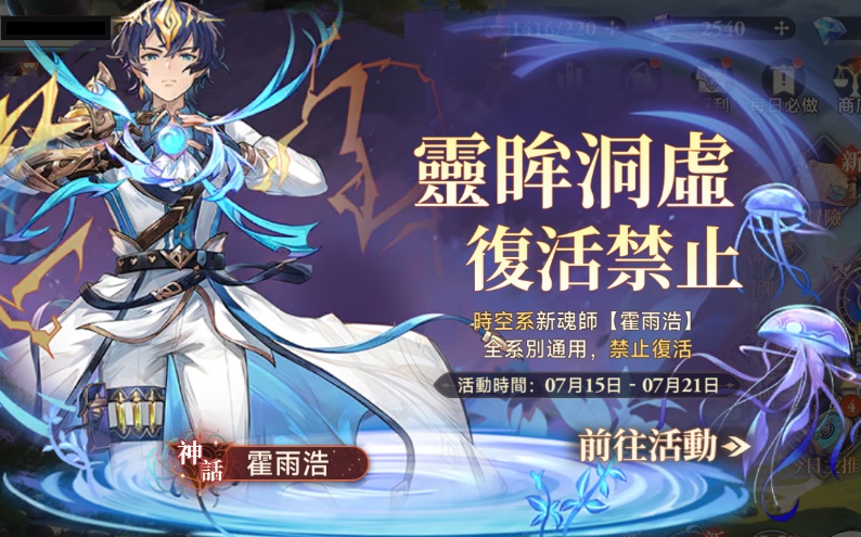 霍雨浩專屬劇情開啟,完成活動劇情即可免費獲得時空系傳說魂師「霍雨浩」。